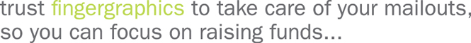 why you should select fingergraphics to handle your direct mail appeal: fingergraphics has great customer service, we will never let you down. fingergraphics has the knowledge, we understand every detail of direct mail from design to lodgement. fingergraphics has the experience, we have been in the business of design, print & direct mail for more than two decades. fingergraphics is a one stop shop. let us handle the technical side of your mailout so you can focus on raising funds. |